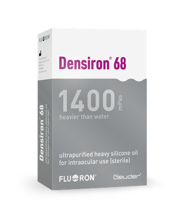 Densiron® 68 is a "heavy" silicone oil tamponade that achieves a higher density than water due to the addition of highly purified perfluorohexyloctane (F6H8®). With a density of 1.03 – 1.06 g/cm³ (at 35 °C ± 2 °C), Densiron® 68 is especially recommended for the treatment of inferior retinal detachments and tears, where conventional treatment methods may be less effective.